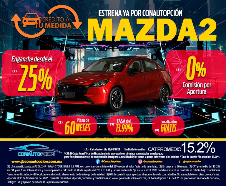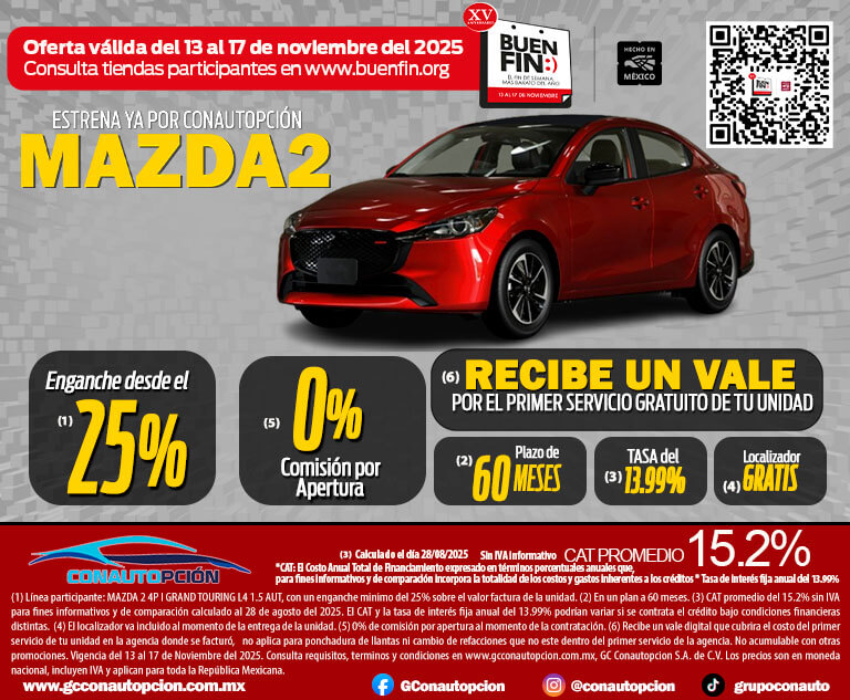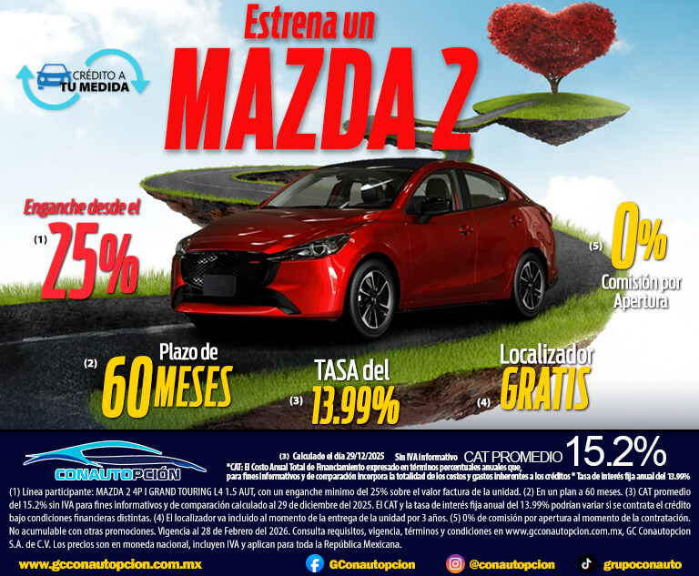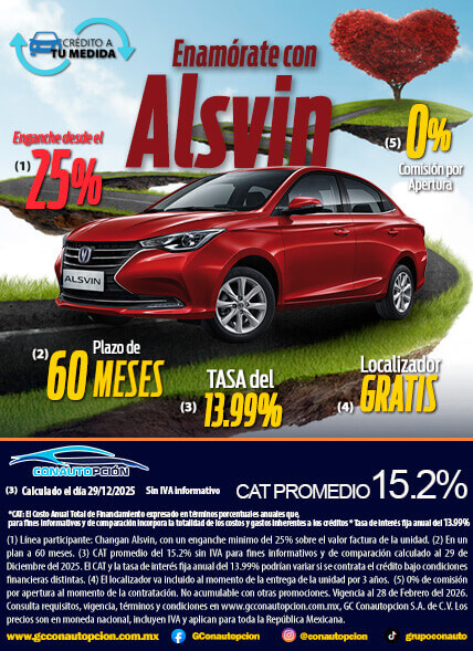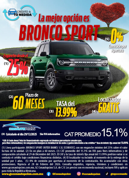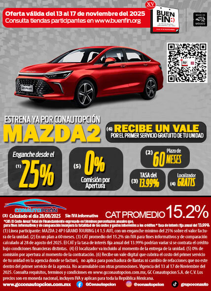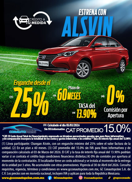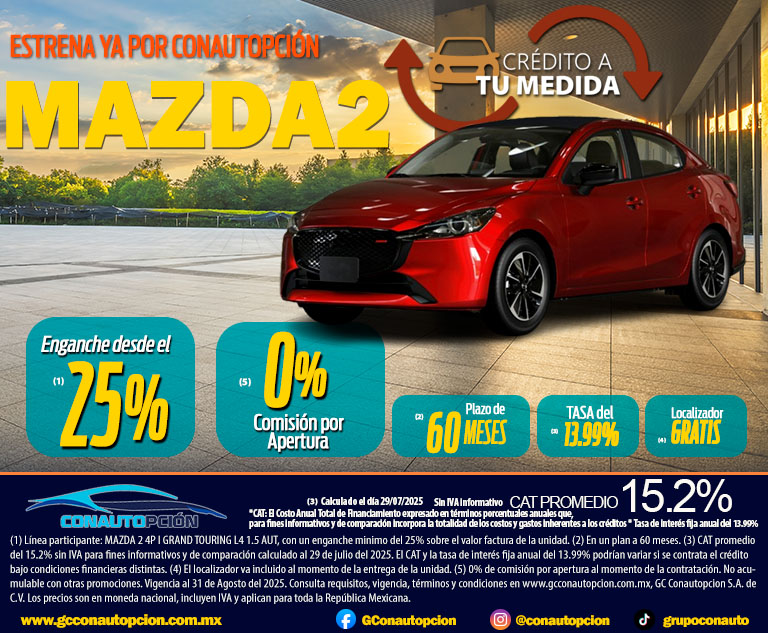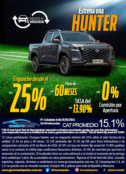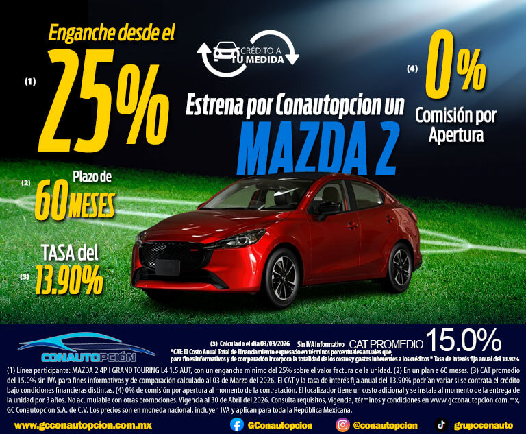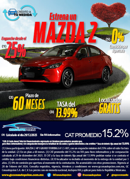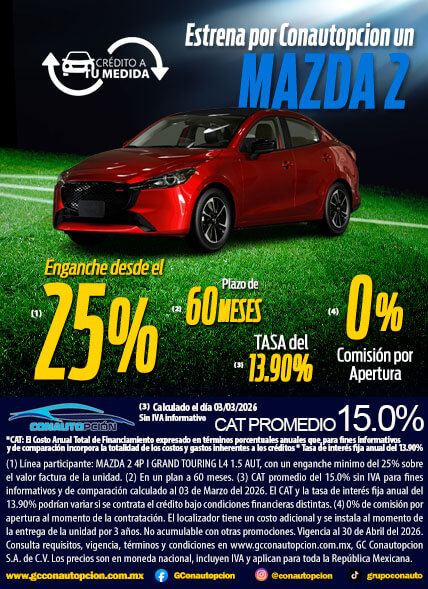 Si usted desea dejar de recibir mensajes promocionales de nuestra parte puede solicitarlo a GCCONAUTOPCIÓN S.A. DE C.V., por escrito con acuse de recibo en Avenida Mariano