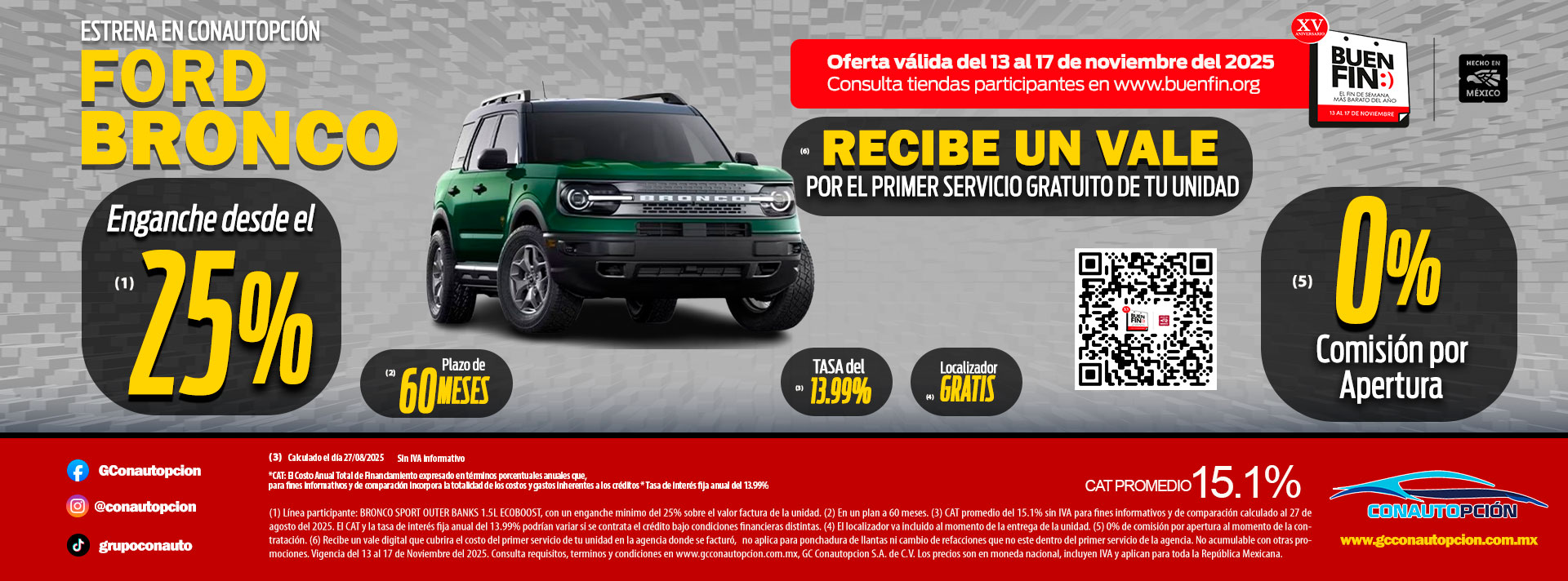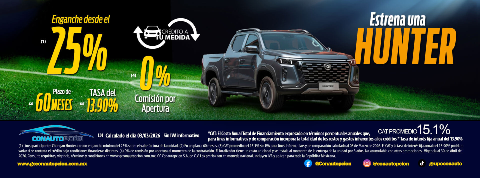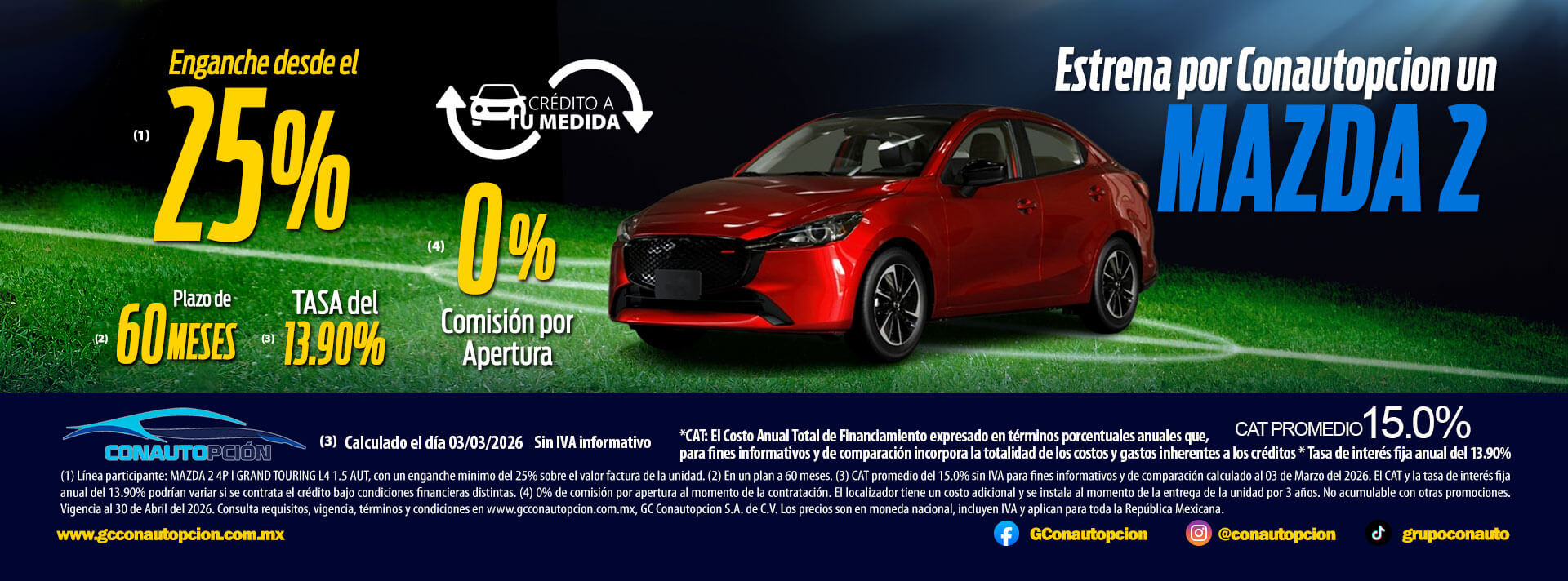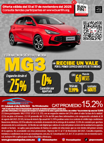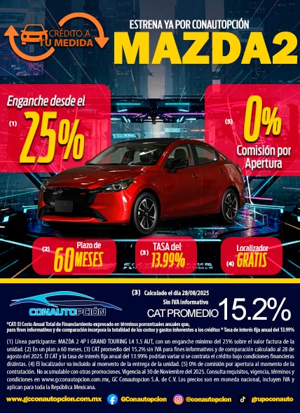 Si usted desea dejar de recibir mensajes promocionales de nuestra parte puede solicitarlo a GCCONAUTOPCIÓN S.A. DE C.V., por escrito con acuse de recibo en Avenida Mariano